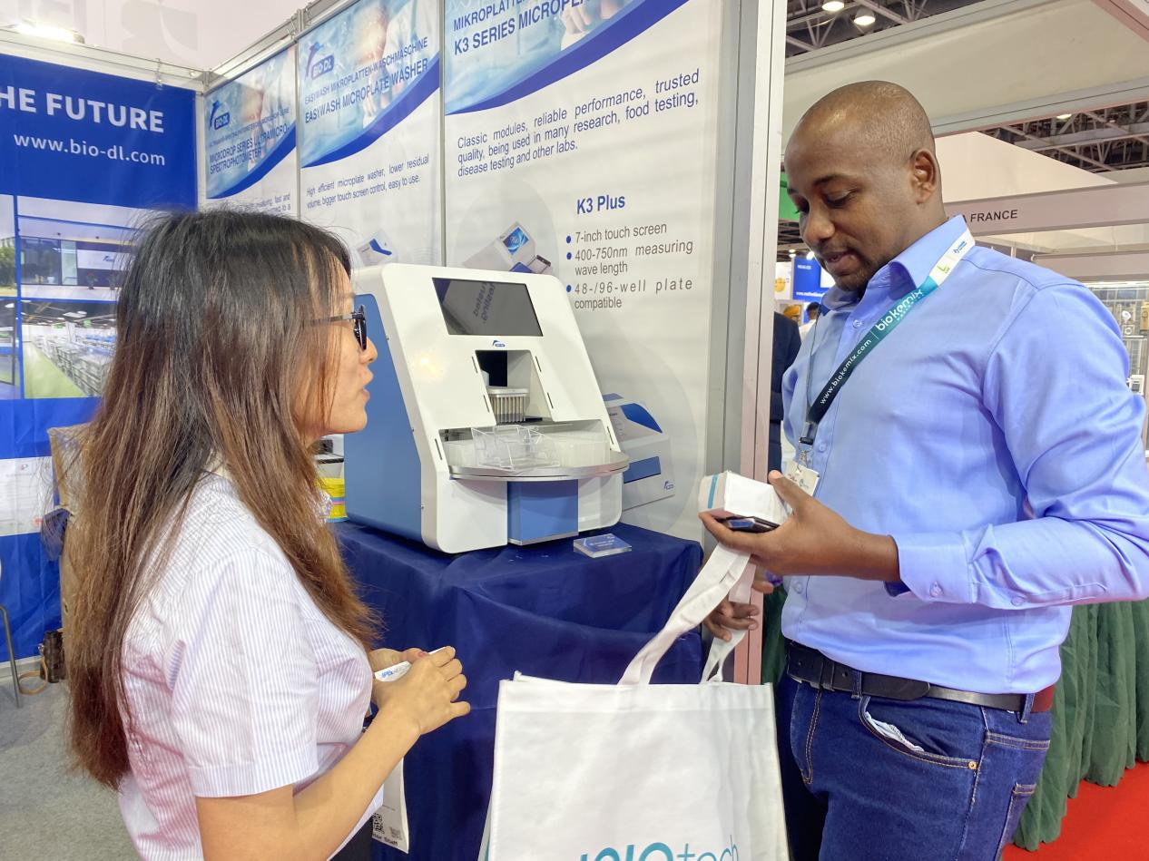 展會期間,寶予德展臺人流如織,吸引了眾多來自中東、非洲及歐洲地區的新老客戶駐足咨詢與體驗。特別是公司核心的液體處理解決方案,以其精準的移液精度和人性化的設計,獲得了現場專業人士的高度評價。而明星產品全自動核酸提取儀的現場演示,更是直觀地展現了其在提升實驗效率、保證結果穩定性方面的強大優勢,引發了與會者的濃厚興趣和深入洽談。